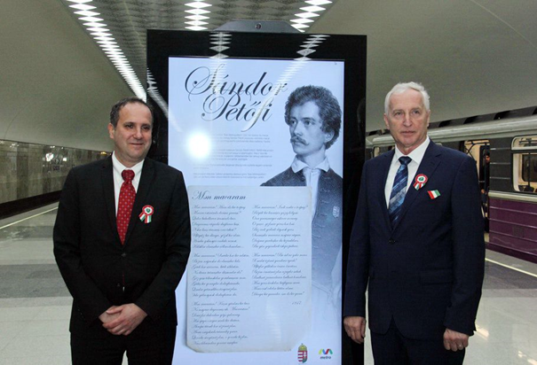 Március 15-én Dr. Mikola István KKM államtitkár és Tarlan Dadashov, a bakui metró ügyvezető-helyettese megnyitották a bakui Memar Ajami metróállomáson felállított, Petőfi-versekből álló roll up kiállítást.